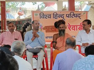 रेवाड़ी, 16 सितम्बर (पवन कुमार)l आज विश्व हिन्दू परिषद् की मासिक जिला बैठक, बाबा भूरानन्द जी की बगीची, कालाका रोड रेवाड़ी पर संपन्न हुई। जो बाबा विजेन्द्रपुरी के सान्निध्य में सम्पन्न हुई, और समापन भी बाबा पुरी के आशीर्वाद के द्वारा ही हुआ। इस बैठक कीअध्यक्षता जिला अध्यक्ष राधेश्याम जी ने की, और मंच संचालन जिला मंत्री परमेश कुमार ने किया। बैठक में आगामी एक महीने के दौरान होने कार्यक्रमों की योजना बनी, और जिम्मेदारियां निश्चित की गई। जिला सहमंत्री मनोज कुमार ने रामायण परीक्षा का विवरण प्रस्तुत किया कि, बच्चों में अच्छे संस्कार डालने हेतु, उनको श्री राम जी सम्बंधित पात्रों और उनके चरित्र से अवगत कराया जाना चाहिए, यह कार्यक्रम प्रान्त स्तर पर आयोजित होगा, जो 07 अक्टूबर को महर्षि बाल्मिकी जयंती के अवसर पर होगा, इस हेतु अधिक से अधिक छात्रों से सम्पर्क करके रामायण परीक्षा का आयोजन किया जाएगा। जिला मंत्री परमेश कुमार ने संगठन की योजना के अनुसार परिषद् की विचारधारा से अधिक से अधिक लोगों को अवगत कराने के लिए, जिले के ग्यारह प्रखंडों में विभिन्न अनुभवी व्यक्तियों को, विस्तारक के रूप में जिम्मेदारियां दी। विभाग मंत्री राजकुमार मुख्य वक्ता के रूप में उपस्थित रहे, और सभी विषयों विस्तार से बताया। इस बैठक प्रान्त टोली सदस्य उपासना गुप्ता, रामप्रसाद करनावास, दुर्गा वाहिनी विभाग संयोजिका रुचि जोशी, जिले संयोजिका किरण पोसवाल, नगर संयोजिका एडवोकेट मोनिका यादव, जिला उपाध्यक्ष नरेन्द्र जोशी, पवन भारद्वाज, बजरंग दल जिला सह संयोजक शिव कुमार चांदनवास, नगर अध्यक्ष राजेन्द्र सिंहल, उपाध्यक्ष शिवकुमार, मोहित गोयल, प्रचार प्रसार प्रमुख श्यामसुंदर, धारूहेड़ा प्रखंड अध्यक्ष जितेन्द्र यादव सहित विभिन्न प्रखंडों के अध्यक्ष मंत्री एवं अन्य कार्यकर्ता भी उपस्थित रहे